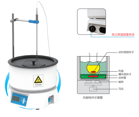● 可以用作水浴或油浴,浴槽內設強磁力攪拌。